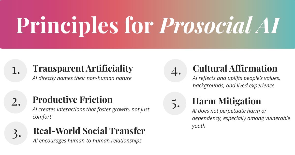In this framework, we distill five key principles that define what it looks like when AI is designed to nurture healthy connection.