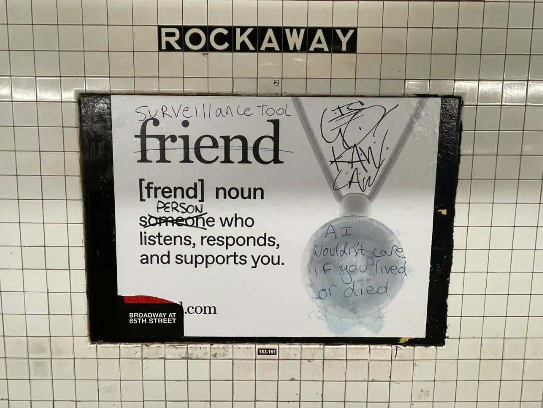 Friend’s NYC subway ads went viral in recent months largely because of the graffiti they were swiftly blanketed in. Sharpied responses like “Stop profiting off loneliness,” “Surveillance capitalism,” and “AI wouldn’t care if you lived or died” caught our attention and made us eager to understand what the Friend experience actually feels like beyond the hype.